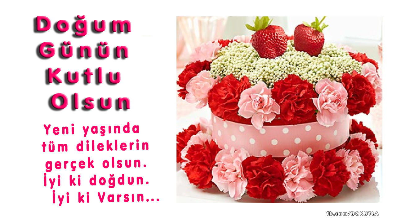 Pembe ve Kırmızı Çiçekli Pasta, Doğum Günü Tebrikleri