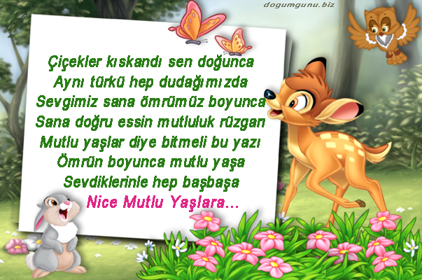 Sevimli hayvanlarla şiirli doğum günü tebrik kartı